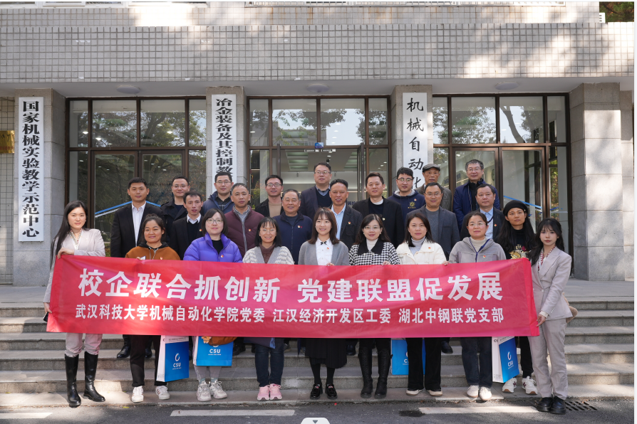 湖北中鋼聯冶金工程有限公司是江漢創谷文化與科技融合示范集聚區優秀民營企業,也是黨建聯盟輪值主席單位。為加強基層黨建工作的交流與探索,提升黨建引領,促進企業高質量發展。12 月 7 日,中鋼聯黨支部組織在寶武鋼鐵有限公司和武漢 科技大學機械學院開展“校企聯合抓創新,黨建聯盟促發展”黨建聯盟活動,江漢經濟開發區工委副書記戴瑩、江漢經濟開發區管委會副主任艾亮、江漢經濟開發區“兩新”黨建指導員洪修平、趙挺松、潘曉光、武漢科技大學機械自動化學院黨委副書記瞿孝平、機械自動化學院副院長王蕾、中鋼聯總經理何雙林、中鋼聯黨支部副書記朱聰、江漢創谷文化與科技融合示范集聚區黨建聯盟單位代表等共 30 余人參加了此次活動,并圓滿舉行。