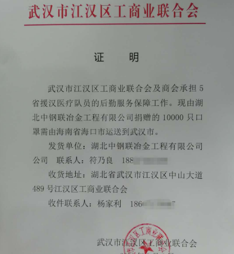 公司本部坐落在武漢市江漢區,武漢疫情的發展時刻牽動著各級領導的心;由于春節假期,員工多數離漢在家自覺封閉管理,遠在中國最南端的海南省符乃良總經理得知公司所在區里抗“疫”緊缺物資口罩的時候,毫不猶豫在海南四處打聽,聯系各界朋友,緊急籌集到10000只口罩,由省會??谥苯舆\抵武漢,緩解了“5省援漢醫療隊”后勤服務保障之急。